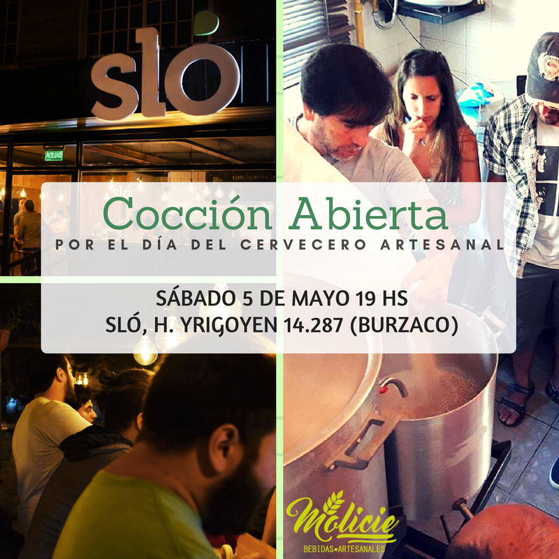 El sábado 5 de mayo se van a realizar cocciones de cerveza simultáneas en el mundo para celebrar el Día Internacional del Cervecero Artesanal. Como no podía ser de otra manera, vamos a sumarnos a esta movida, y realizar una cocción abierta en Sló, un bar de Burzaco (Av. H. Yrigoyen 14.287) que además de buena birra tiene unos ahumados imperdibles. Participá y sé parte de este evento global. Vamos a cocinar una cerveza con naranja y romero, sortear algunos botellones, y ponerle toda la onda. Si querés pasar un buen momento mientras hacemos una birra, te esperamos.